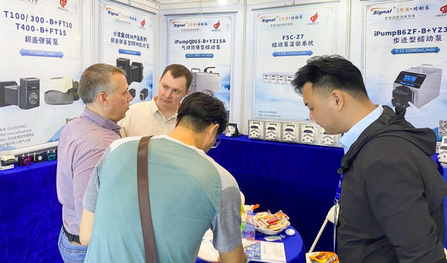 為期三天的展會,吸引了來自全國各地的參展商和觀眾,旨在助力醫療器械行業的健康快速發展。 在展會現場,思諾流體展示了眾多蠕動泵產品,包括AI智能蠕動泵、灌裝系統蠕動泵,新研發的蠕動泵泵頭和OEM等,吸引了眾多參觀者駐足咨詢,展臺人氣旺盛。