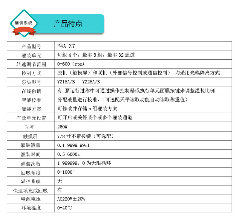 1.灌裝系統由4組基本通道(可擴展至32通道),一臺控制器組成,可安裝YZ15、YZ25泵頭