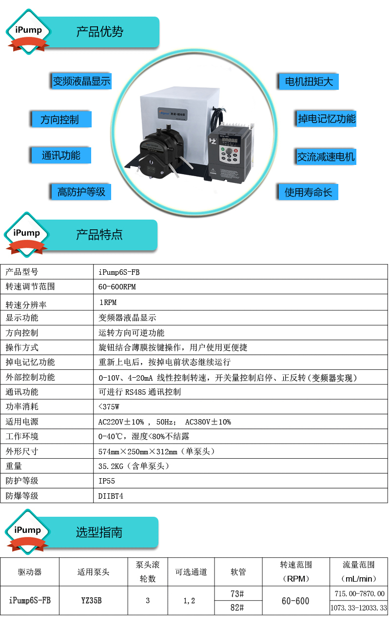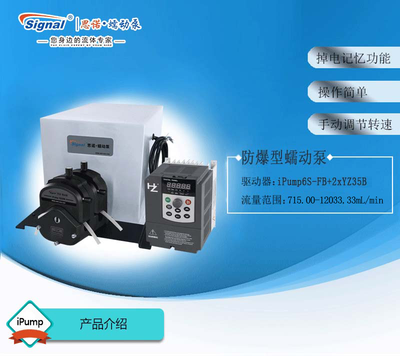 流量范圍:715-12033.33mL/min 免維護(hù)交流防爆減速電機(jī)驅(qū)動(dòng),變頻器調(diào)節(jié)轉(zhuǎn)速 電機(jī)扭矩大,可級(jí)聯(lián)雙泵頭 防爆等級(jí)DIIBT4,適合易燃易爆環(huán)境使用