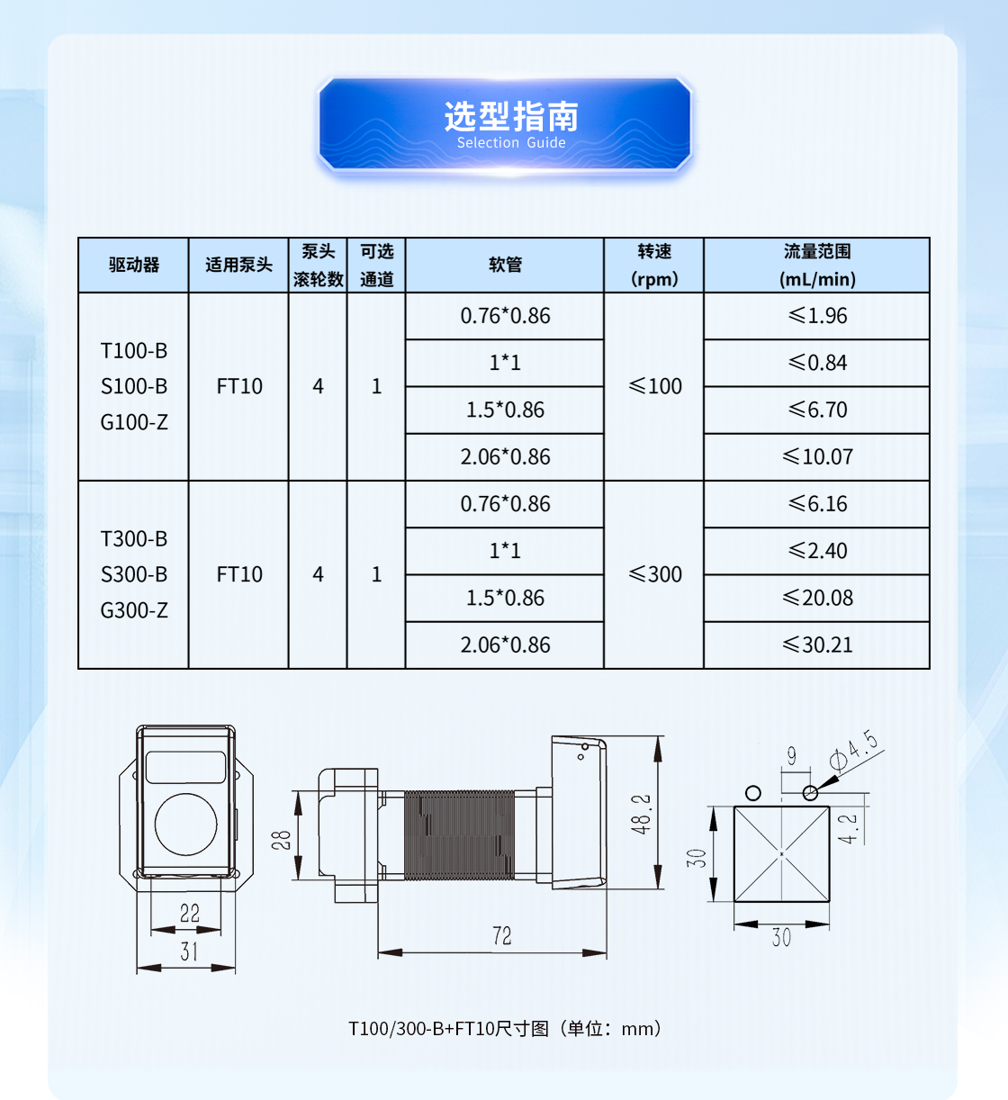 1.流量范圍:<30mL/min 2.控制與泵頭一體化設(shè)計,整體更加緊湊 3.上蓋與壓塊聯(lián)動機構(gòu),安裝軟管更方便 4.彈管壓塊,可適配多種軟管 5.步進電機驅(qū)動 6.透明觀察窗可方便查看泵頭運行狀態(tài) 7.開蓋傳感器(選裝):泵蓋打開,自動報警或:停止運行