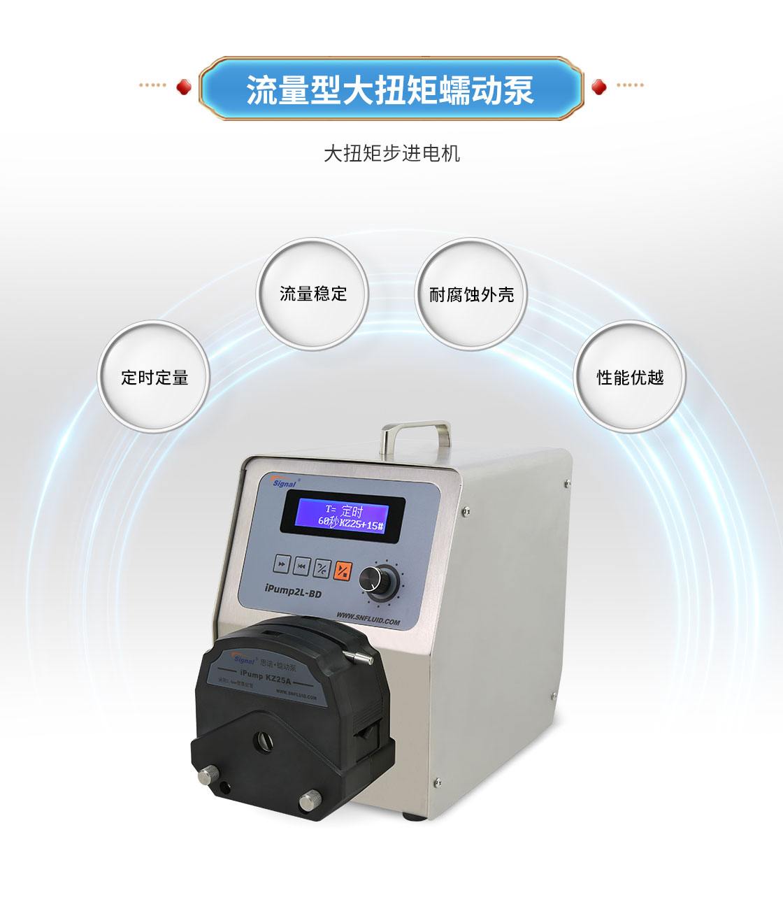 2.大扭矩步進(jìn)電機(jī)驅(qū)動(dòng),適合多泵頭串聯(lián)使用;