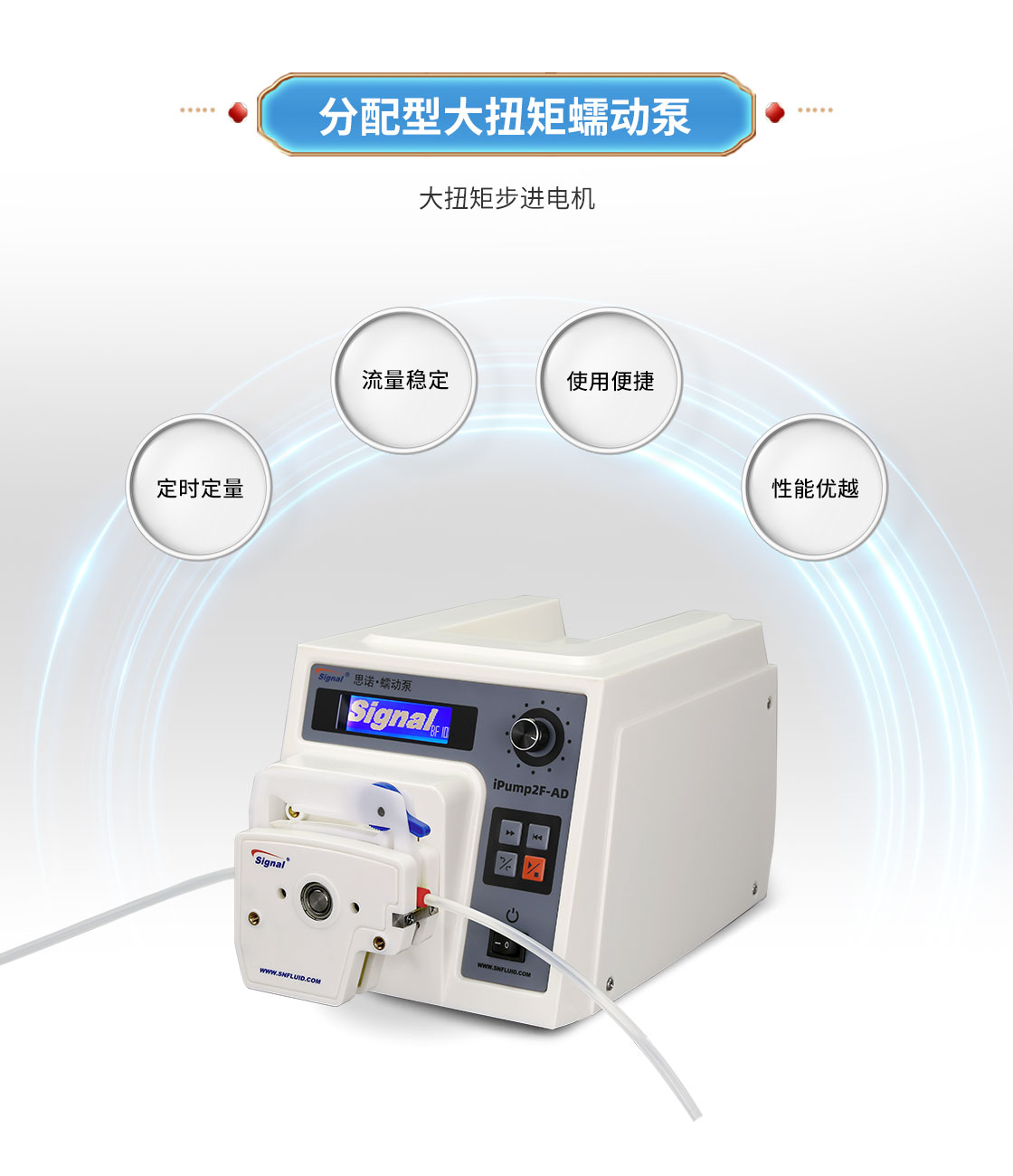 2.大扭矩步進(jìn)電機(jī)驅(qū)動(dòng),適合多泵頭串聯(lián)使用;