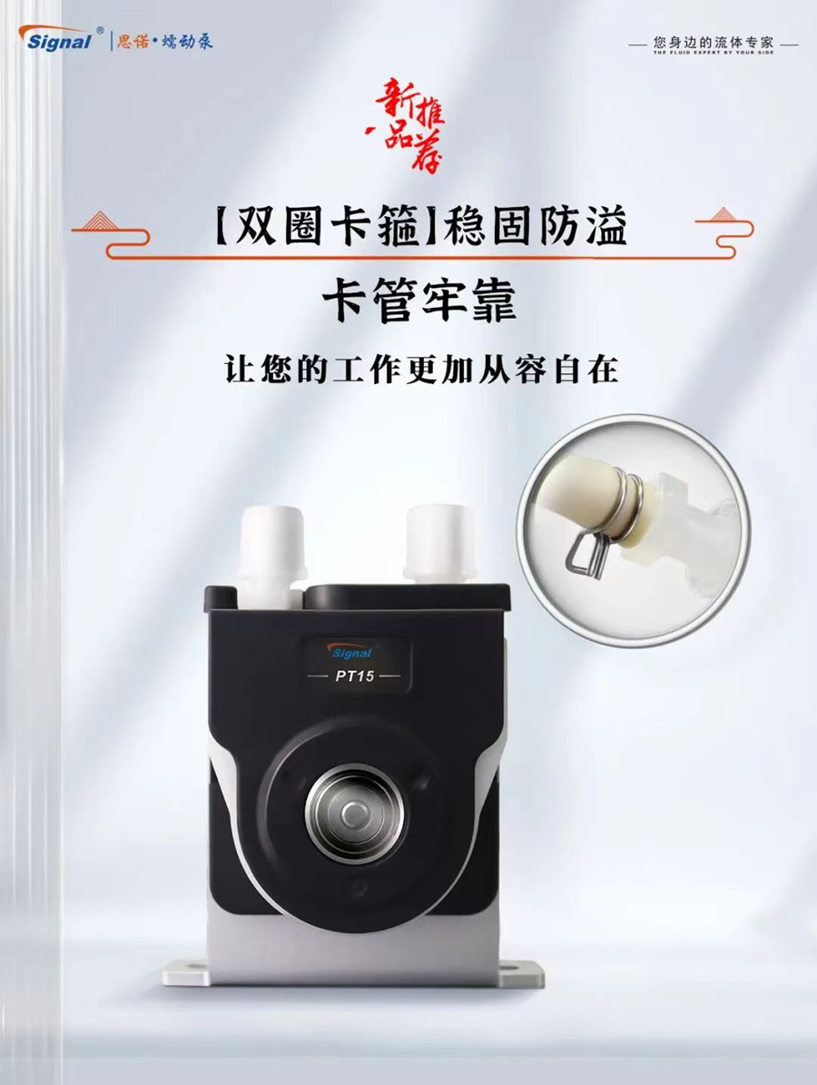 蠕動泵G-2J+PT15具備雙圈卡箍,這種設計能夠更牢固地卡住軟管,可以有效避免漏液,軟管的安全性得到了充分保障。